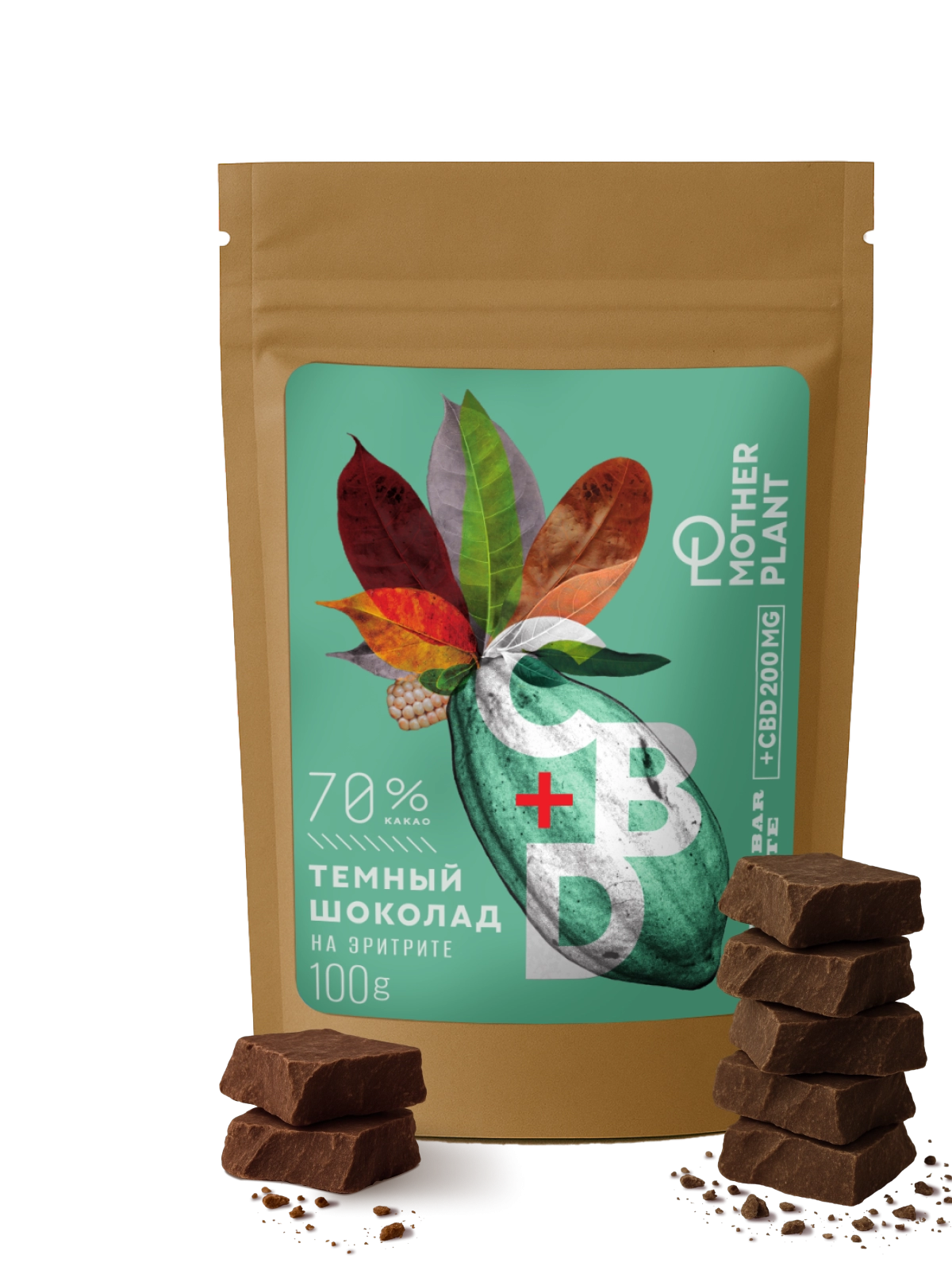 Тёмный шоколад на эритрите (70% какао, 100мг CBD), MotherPlant, Вес 50гр. MotherPlant