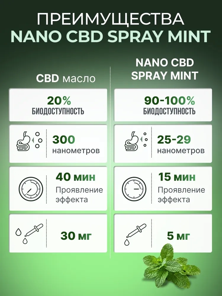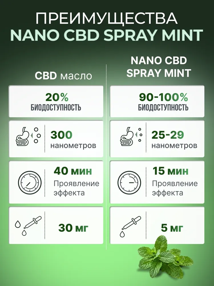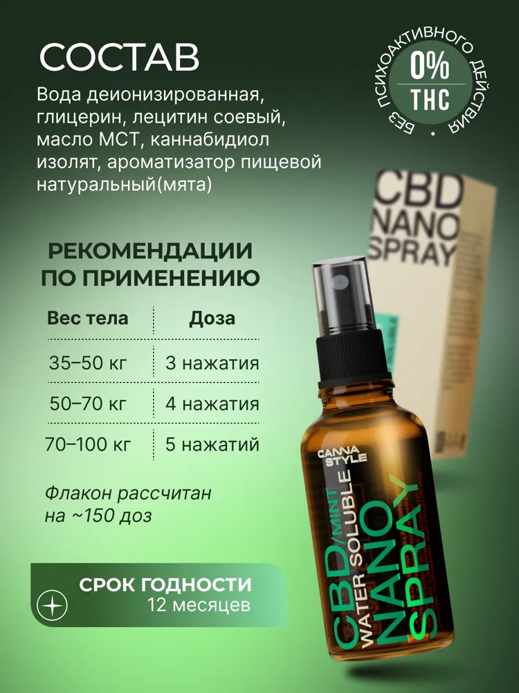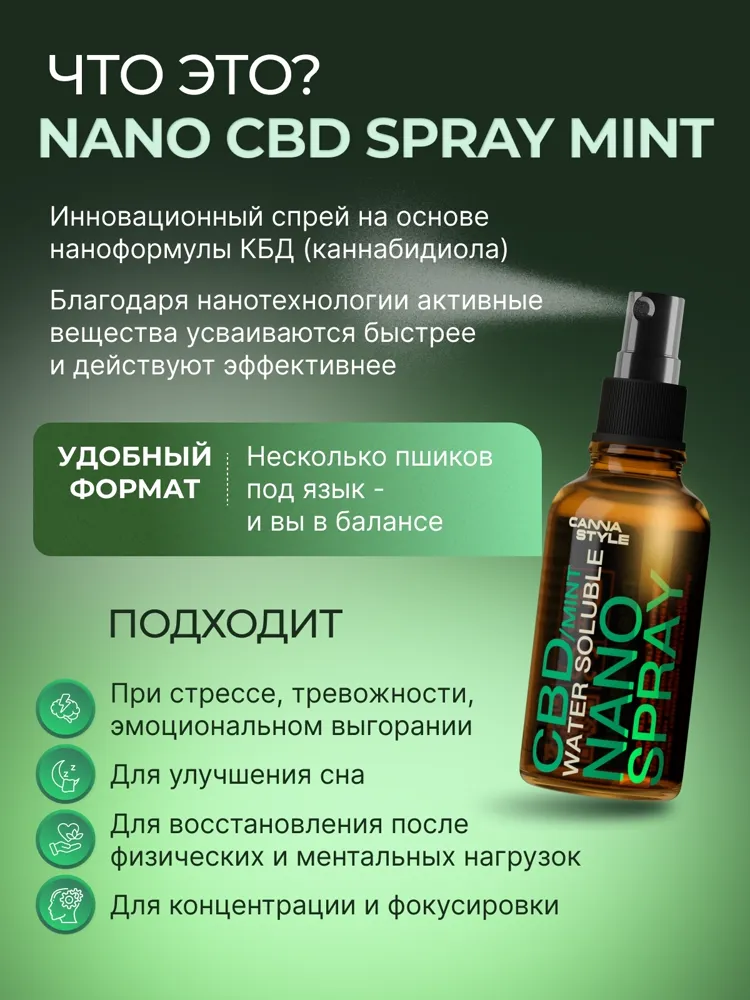 CBD Nano Spray — это современное средство на основе каннабидиола, созданное с применением нанотехнологий для максимального усвоения организмом. Благодаря микроскопическим частицам, CBD начинает действовать уже через несколько минут, помогая быстро снять напряжение, улучшить качество сна и восстановить внутреннее равновесие.